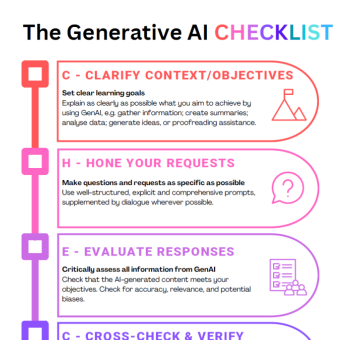 Download the The Generative AI CHECKLIST for a checklist of useful tips when using Generative AI.
